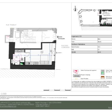 Rénovation d’un immeuble de caractère intra-muros, au cœur de la ville et des remparts, 10 logements d’habitation.