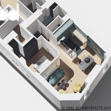 Plans d’aménagements intérieurs travaillés avec l’architecte AD Architecte afin de simuler une représentation des futurs logements. Ces documents sont non contractuels, ce ne sont en aucun cas des plans d’exécution et ne pourront servir à la réalisation des travaux. Crédits photos : AD Architecte.