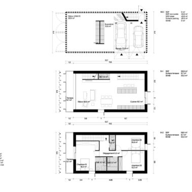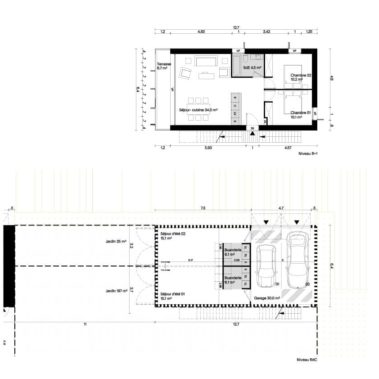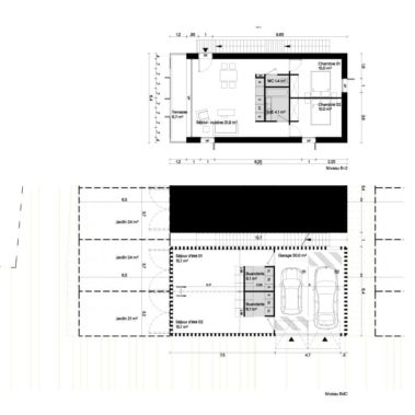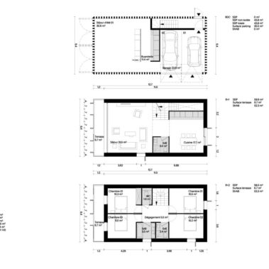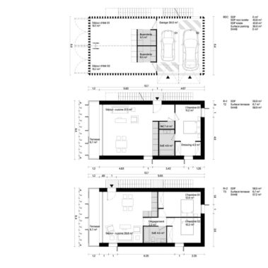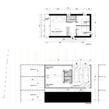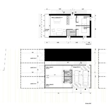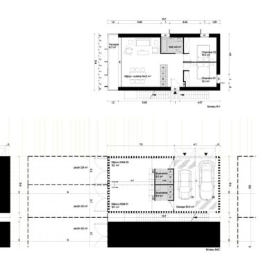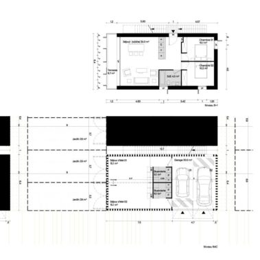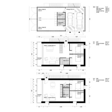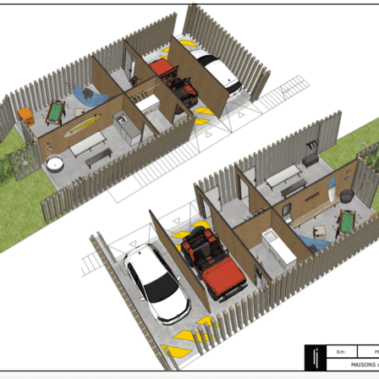 Présentation graphique des maisons et appartements. Ces documents ont été réalisés par le cabinet d’architecture dans le cadre de ce projet de construction, le projet étant en cours, ces documents sont non contractuels..