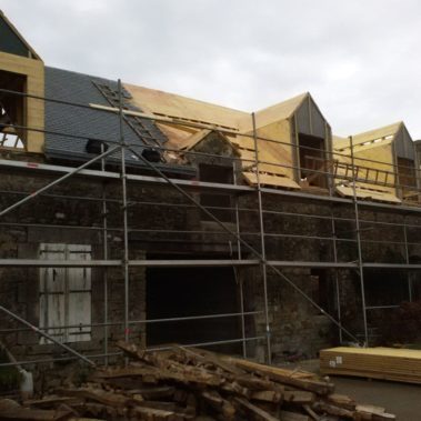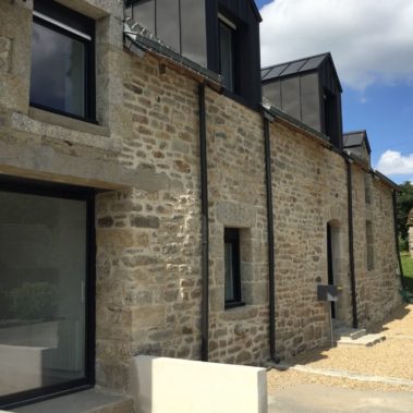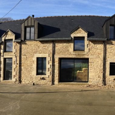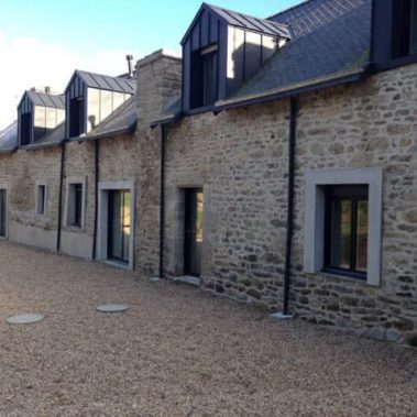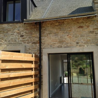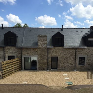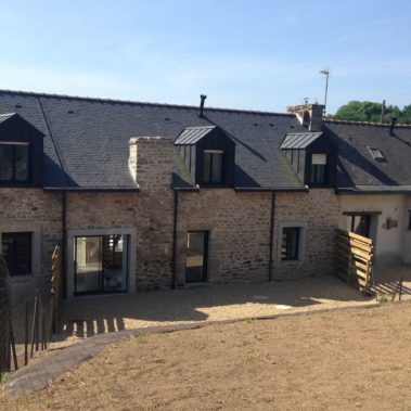 Rénovation d’une longère en trois maisons avec jardin privatif et places de parking.