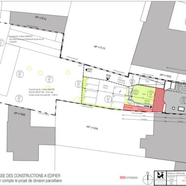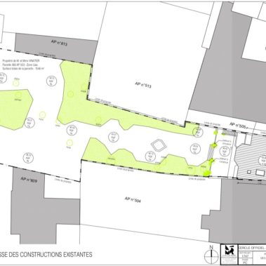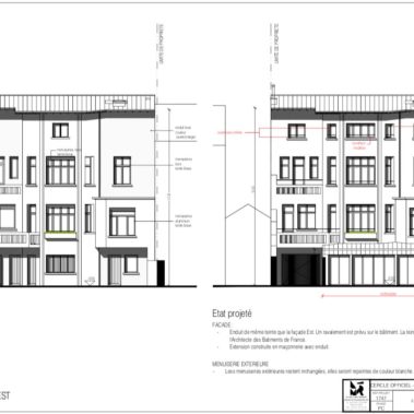 Ci-dessous les éléments constituant le permis de construire déjà déposé et validé : Plans de masse de l’existant et du futur projet, Façades existantes et futures, plans de coupe, de situation… .